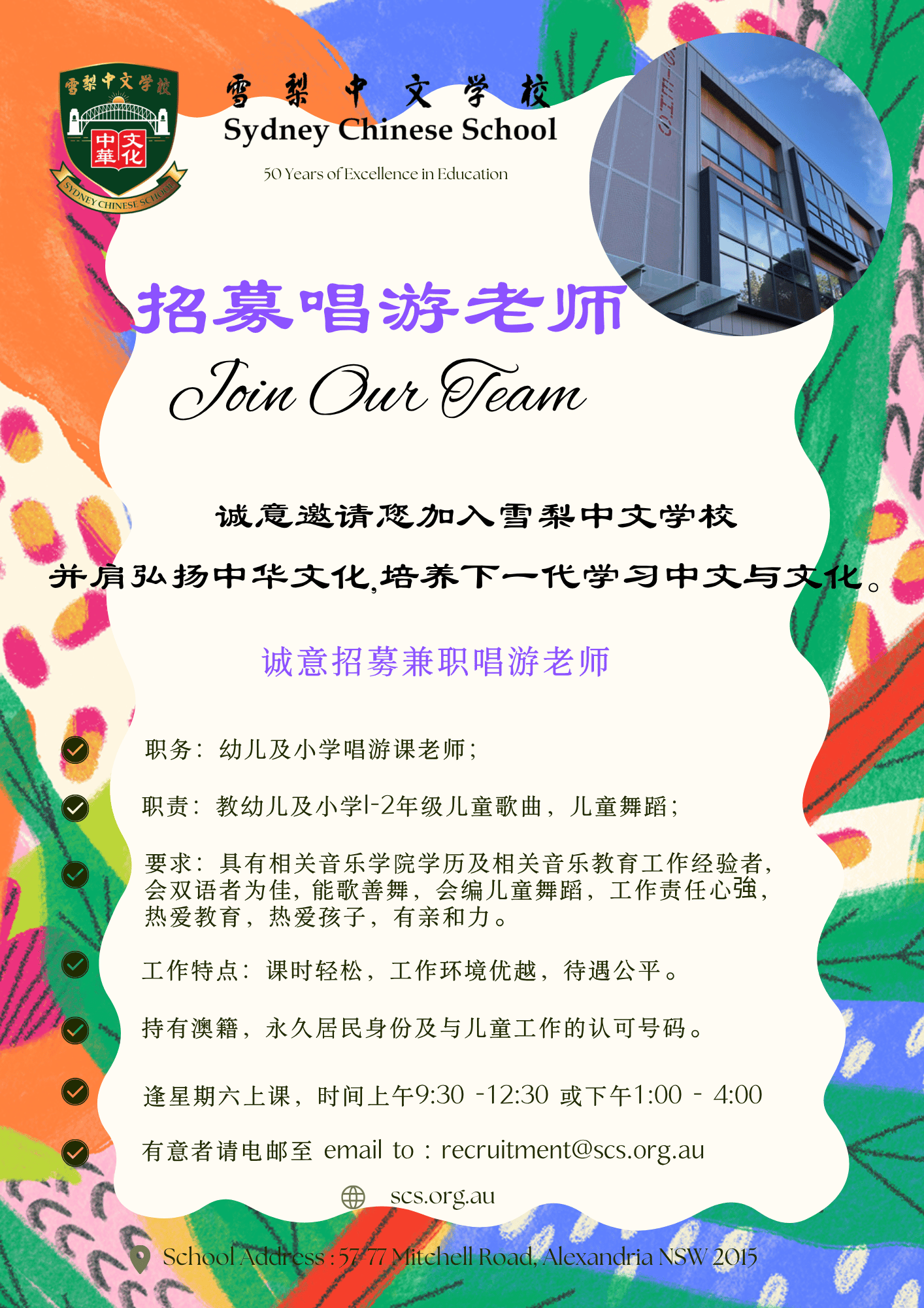 3. 具备中文教育专业和澳洲儿童教学经验。